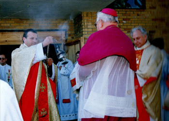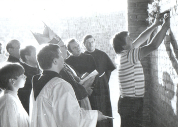 | 11.06.1988 | POŚWIĘCENIE PLACU POD BUDOWĘMinister prowincjalny o. Leon Rawalski po okolicznościowej Eucharystii dokonał poświęcenia placu pod budowę kościoła i klasztoru. Na zakończenie obrzędu życzył parafianom, aby zapoczątkowane ich parafii dzieło budowy dotrwało do końca. | ![]() | |