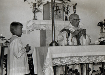 | 01.11.1979 | PIERWSZA EUCHARYSTIA I PROWIZORYCZNA KAPLICAW Darłówku została odprawiona pierwsza Eucharystia. Liturgii przewodniczył o. Witalis Jaśkiewicz, który przebywał tutaj w celach leczniczych i z uwagi na stan zdrowia nie był w stanie dojeżdżać na Msze Święte do kościoła parafialnego w Darłowie. Na cel celebracji została przygotowana prowizoryczna kaplica, urządzona w zaadoptowanej piwnicy siedziby punktu katechetycznego. | ![]() | |